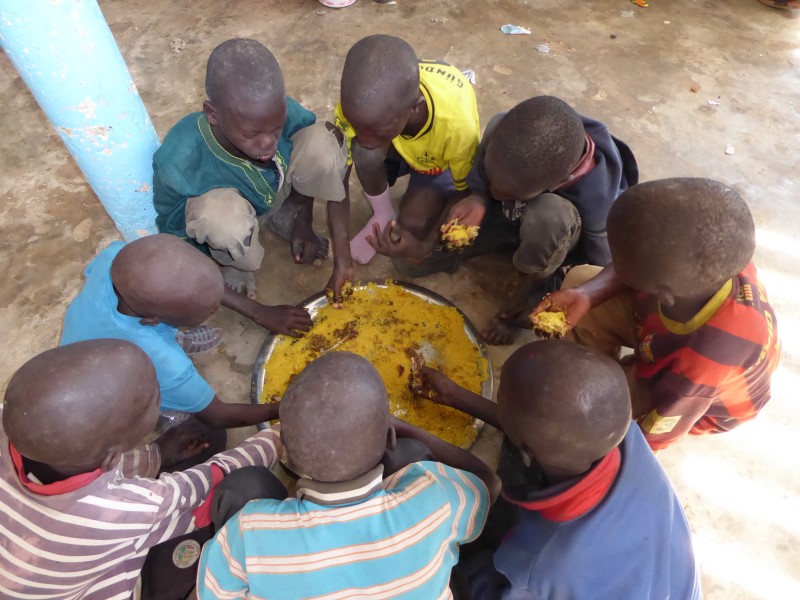 Après la conférence skype, les enfants talibés ont partagé un repas succulent de couscous à la sauce de poulet financé par Espoir Talibés pour leur grand bonheur.