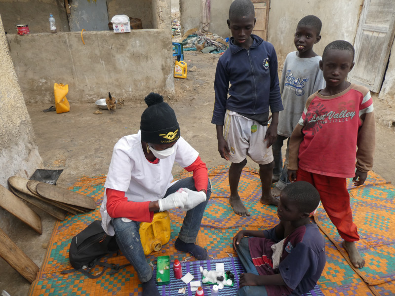 JUIN 2020 : Le travail redémarre doucement...Privés de soins depuis le 20 mars, les enfants ont accumulé de nombreuses plaies et faute d’hygiène nos deux soignants ont constaté une recrudescence de la gale. Les centres d’accueil fermés, impossible pour eux de se laver ! La situation continue d’être très difficile pour les enfants talibés…